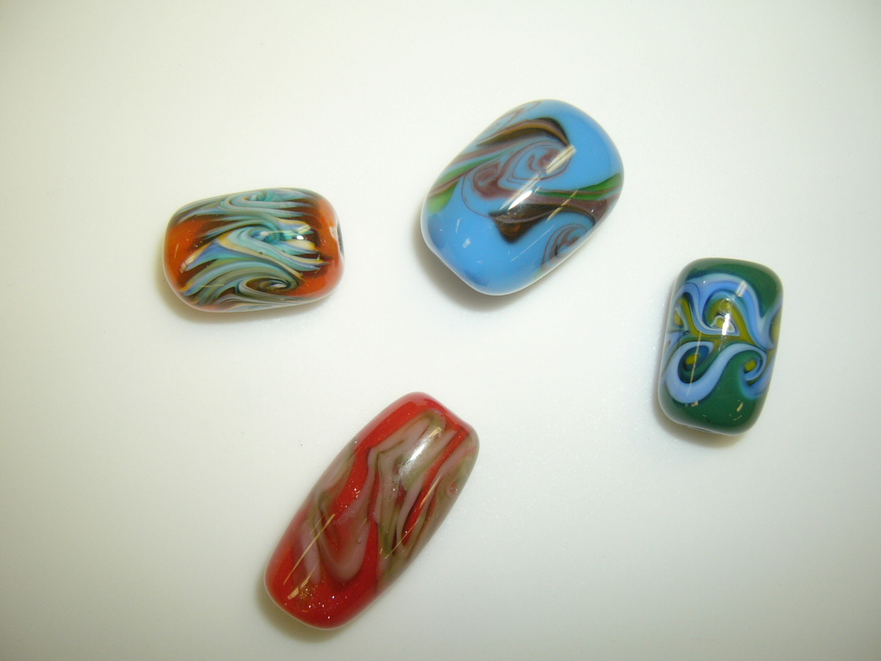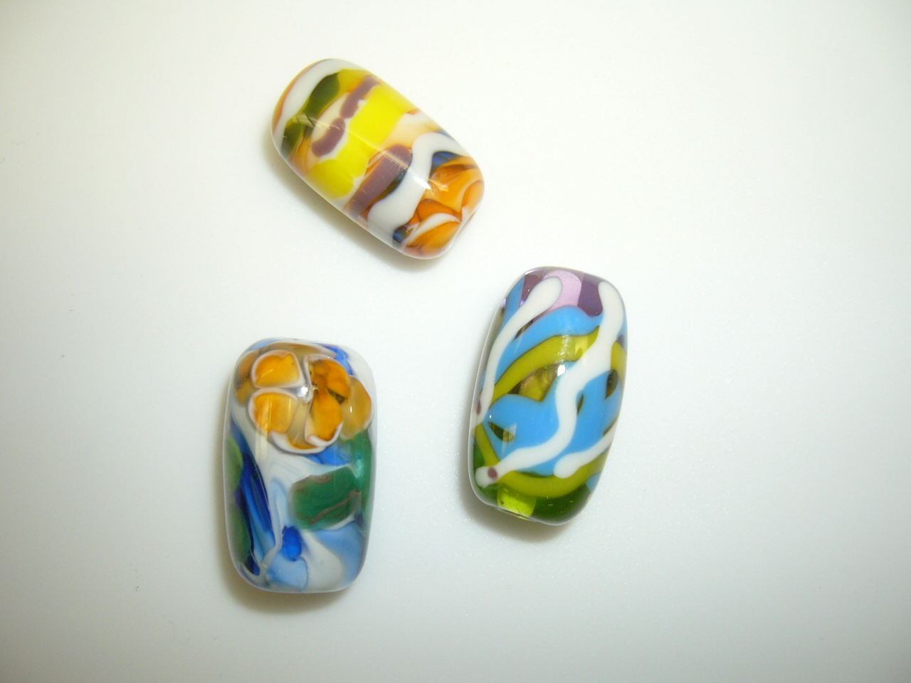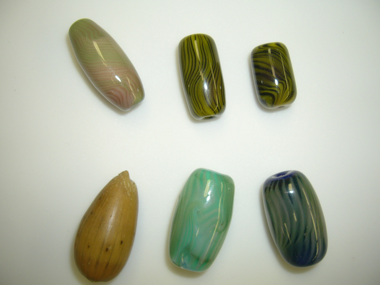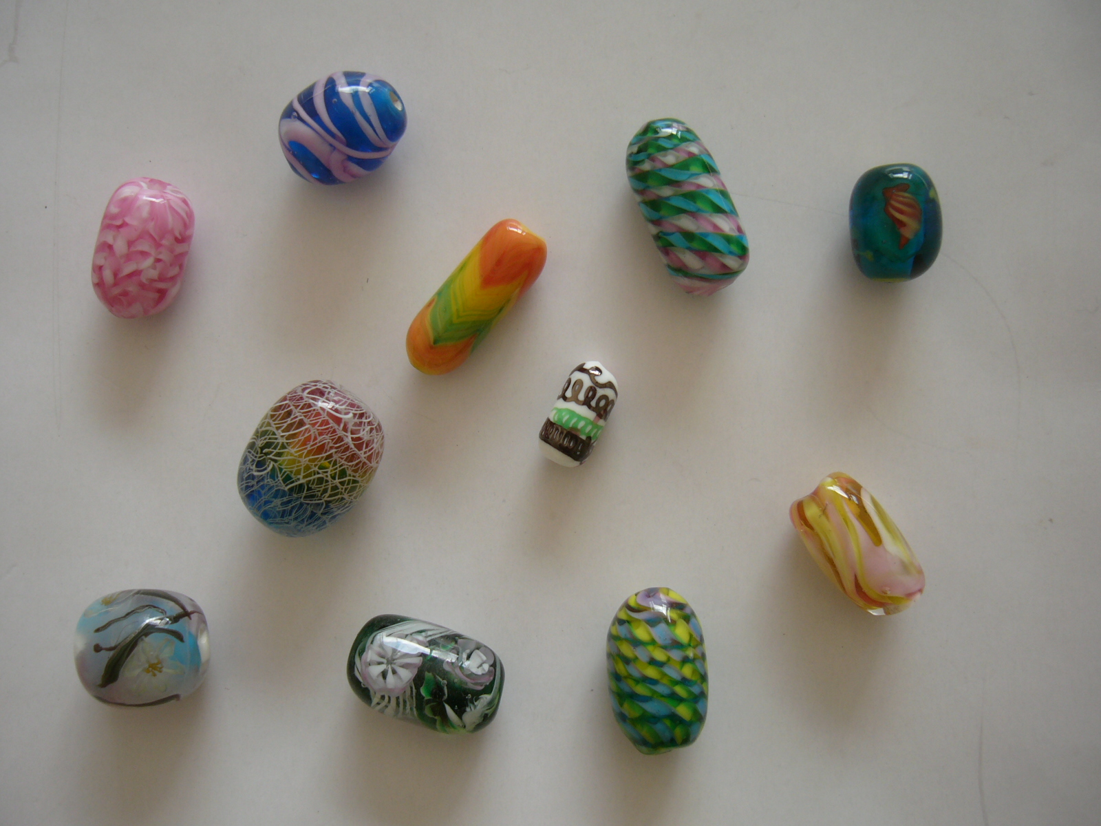 ... as well as starting to develop my own style. One of the object below is not a bead; I found it a few days after I made these beads.